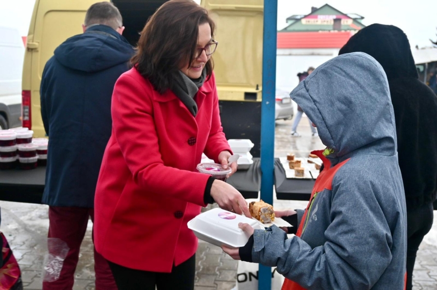 "To już stało się pewnego rodzaju naszą tradycją lewicową, że po prostu dzielimy się posiłkiem. W Łodzi dzielimy się już od kilkunastu lat, ale kilka lat temu rozpoczęliśmy taką akcję w całym województwie łódzkim. W poprzednich latach byliśmy w Zduńskiej Woli, Sieradzu, Piotrkowie Trybunalskim, Tomaszowie Mazowieckim i innych miastach, a dzisiaj naszą wyprawę zaczęliśmy od Skierniewic, a teraz jesteśmy w Rawie Mazowieckiej i będziemy jeszcze w Tomaszowie Mazowieckim. Dzielimy się posiłkiem, który składa się z ciepłego barszczu z uszkami, wegetariańskiej kapusty z grochem, pierogów z kapustą i grzybami, a także słodkiego ciasta. Chcemy tym też wskazać na pewien problem. Problem ubóstwa, który rozpowszechnia się w Polsce. Z raportu wynika, że poziom ubóstwa w Polsce rośnie. Chcemy uczulić wszystkich tych, którzy mogą sobie pozwolić na to, żeby podzielić się posiłkiem lub czymkolwiek innym, chociażby dobrym słowem, chociażby jakimś prezentem, żeby również dzielili się z innymi, bo dzielenie się daje radość nam wszystkim" - stwierdziła posłanka Anita Sowińska.