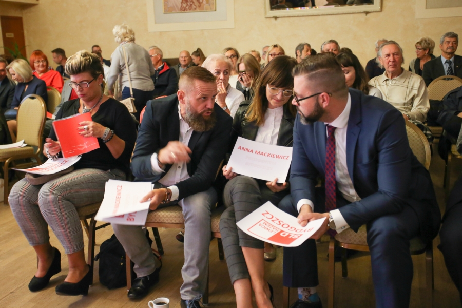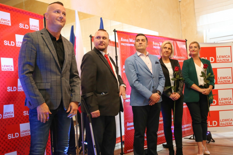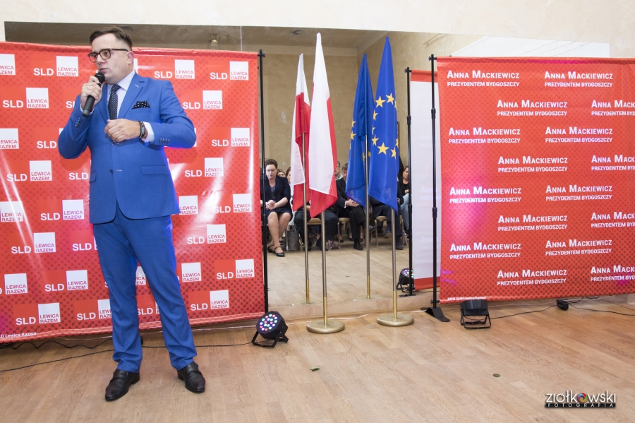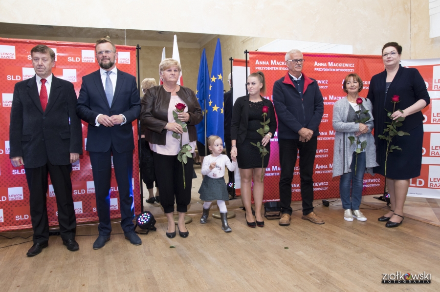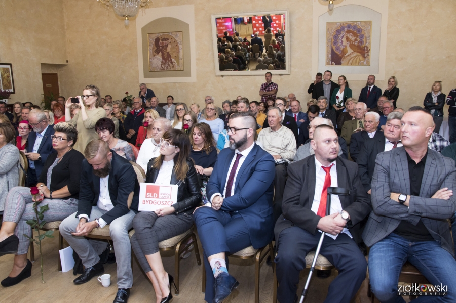 24 września 2018 r. odbyła się inauguracja kampanii samorządowej KKW SLD Lewica Razem w Bydgoszczy. Anna Mackiewicz, która kandyduje na urząd Prezydenta Bydgoszczy, zaprezentowała główne punkty swojego programu. Wydarzenie poprowadził duet Ania Niewiadomska i Tomasz Puławski, którzy przedstawili kandydatki i kandydatów do Rady Miasta Bydgoszczy oraz Sejmiku Województwa Kujawsko-Pomorskiego. Lider listy do Sejmiku Jan Szopiński dokładnie wyłuszczył, dlaczego warto głosować na listę KKW SLD Lewica Razem, a szef patii w mieście i województwie Ireneusz Nitkiewicz przedstawił ramy programu wyborczego lewicy. Na listach znalazły się osoby reprezentujące różne środowiska: społecznicy, szefowie rad osiedli, pracodawcy, wykładowcy akademiccy, przedsiębiorcy, osoby walczące o prawa osób niepełnosprawnych, artyści, nauczyciele, studenci i uczniowie. Fot. Piotr Ziółkowski