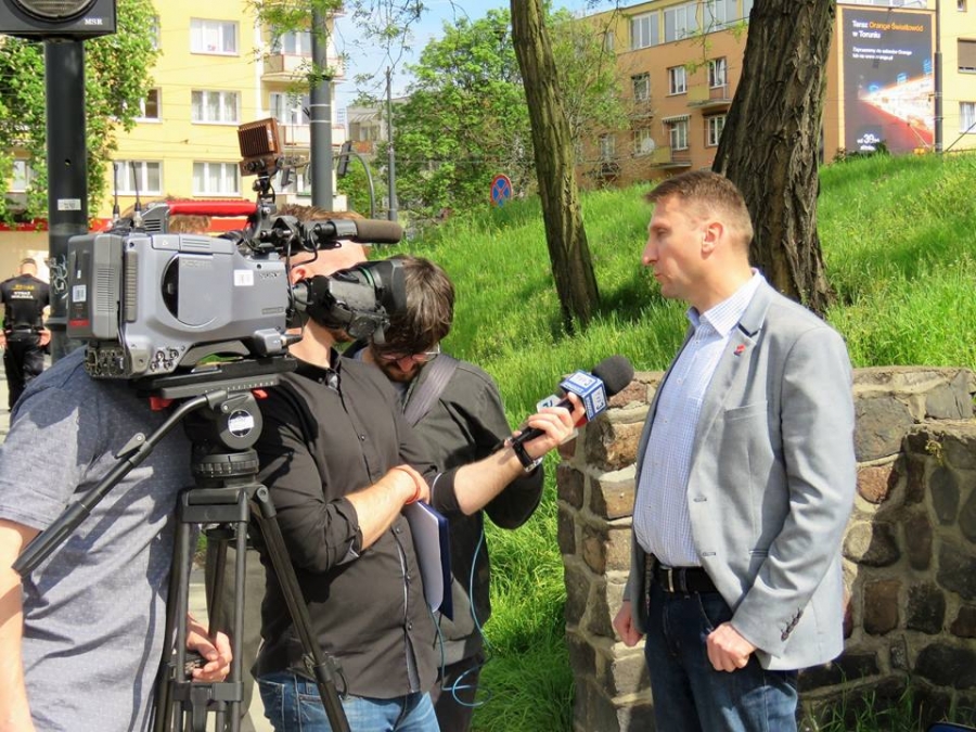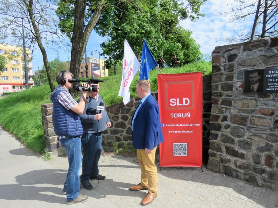 Tradycyjnie z okazji Święta Pracy w Toruniu odbył się dzisiaj okolicznościowy wiec. W miejscu gdzie do niedawna wisiała tablica upamiętniająca Juliana Nowickiego zebrani wysłuchali okolicznościowych przemówień. Podkreślano w nich głównie obecną sytuację, w której znaleźli się emerytowani funkcjonariusze służb mundurowych oraz nauczyciele po reformie oświaty. Poruszano także kwestie praw kobiet i godnego funkcjonowania osób niepełnosprawnych oraz ich rodzin. Na zakończenie podkreślono wartości, którymi kieruje się dzisiejsza lewica, a które to są zbieżne z tymi, będącymi fundamentem zjednoczonej Europy. Dziękujemy wszystkim za przybycie. Członkom i sympatykom SLD, przedstawicielom służb mundurowych i wojska, delegacji ZNP oraz środowisk broniących praw kobiet. Przede wszystkim jednak, dziękujemy przybyłym mieszkańcom Torunia, którzy mimo dzielących nas różnic przybyli by wspólnie domagać się poszanowania godności, praw pracowniczych i praw człowieka z prawami kobiet i osób niepełnosprawnych w szczególności. Dziękujemy, w imieniu organizatorów - szef SLD w Toruniu i powiecie toruńskom Marek Jopp. Zdjęcia - Dawid Podlewski.