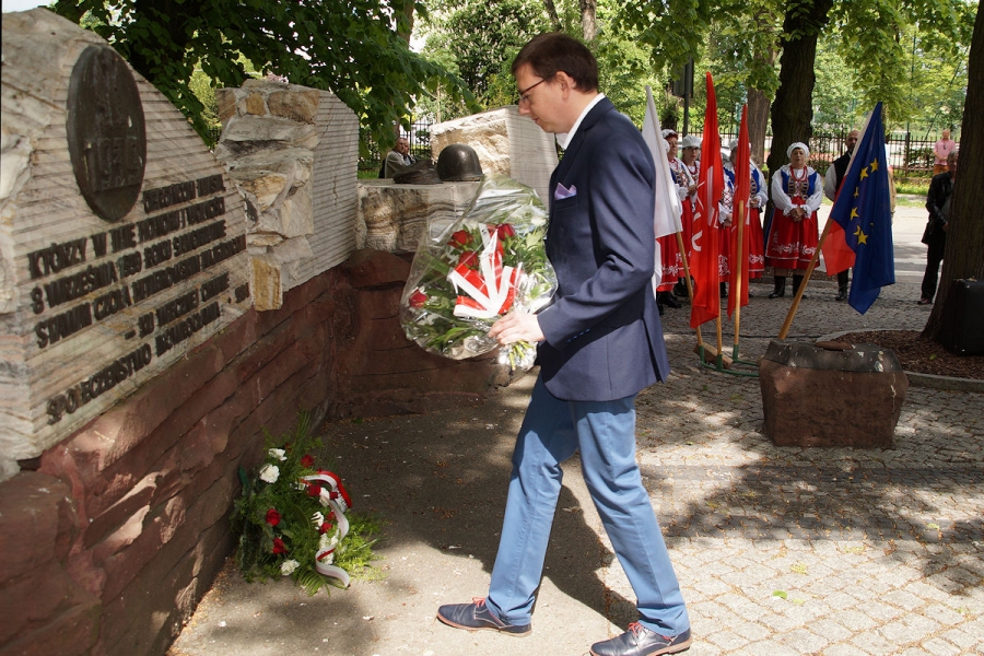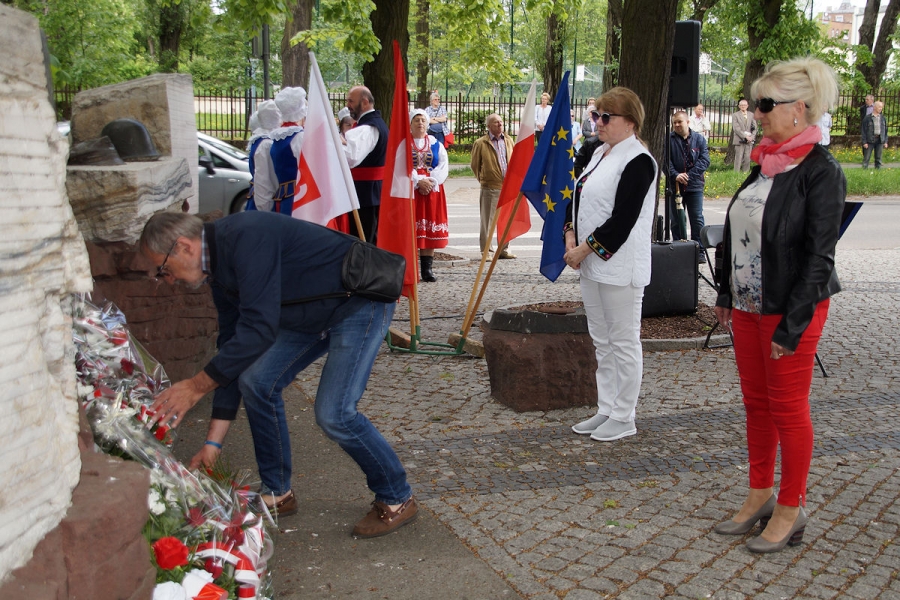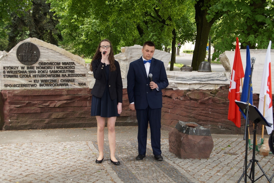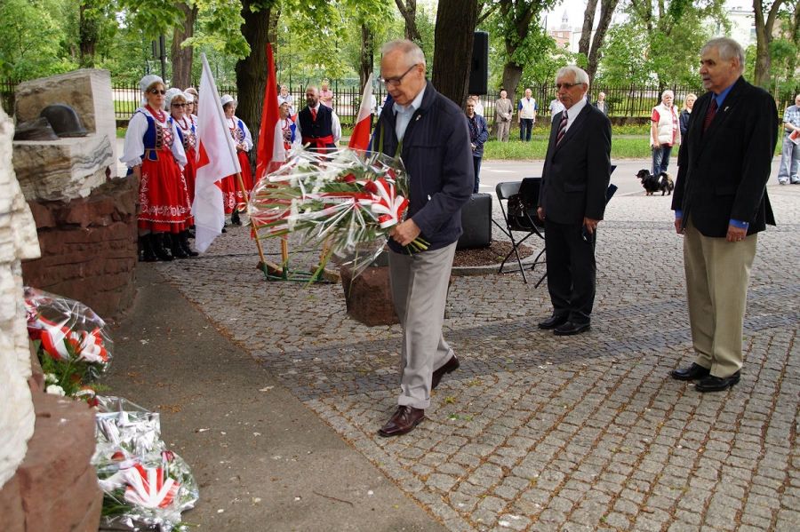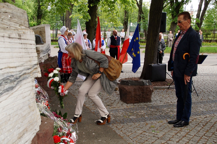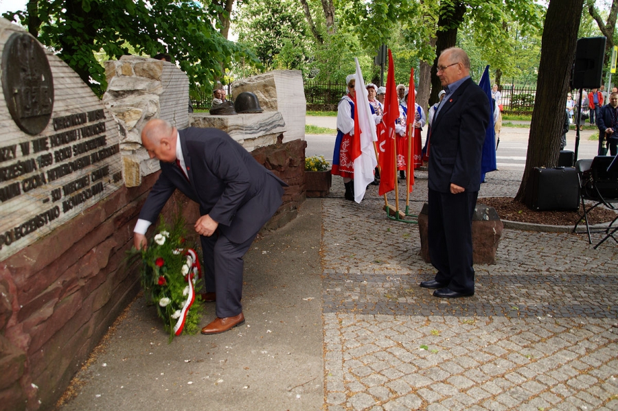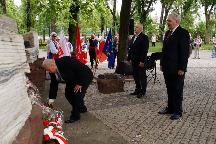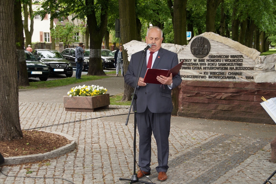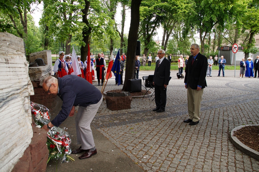 Obchody 1 Maja zorganizowane przez SLD w Inowrocławiu pod Pomnikiem Obrońców Inowrocławia. Fot. Mieczysław Kamiński